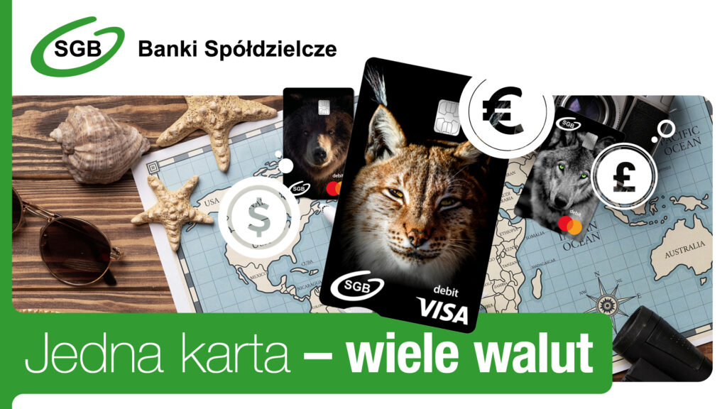 W dowolnym momencie przypinaj swoją kartę (wydaną do konta w PLN) do swoich kont walutowych (EUR, USD, GBP). Możesz to zrobić w aplikacji mobilnej SGB Mobile lub w naszym oddziale.